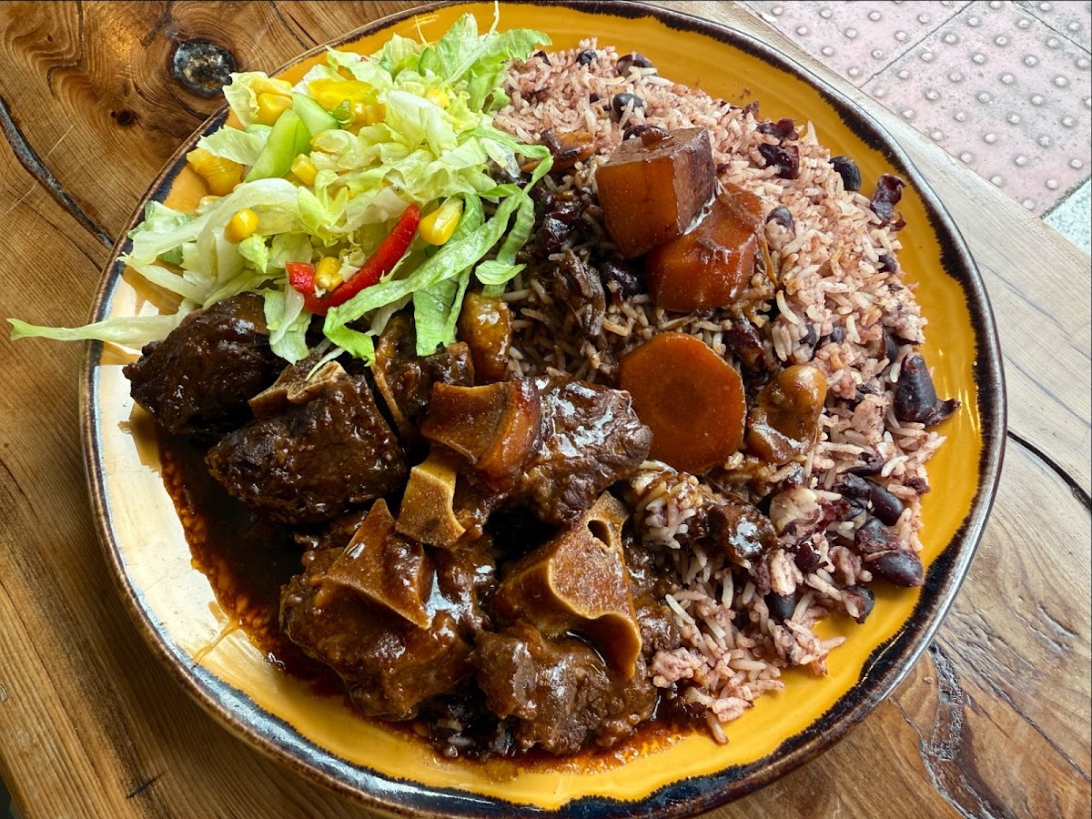 At Stoplight Caribbean, the menu bursts with tantalizing options. Begin your meal with their staple Brown Stew Chicken, where succulent chicken falls off the bone, complemented by aromatic rice and peas that soak up the rich flavors of the stew. If you’re a fish lover, the Escovitch Parrot Fish and Brown Stew Sea Bass are must-tries, delivering a perfect blend of spices that resonate with the Caribbean spirit.